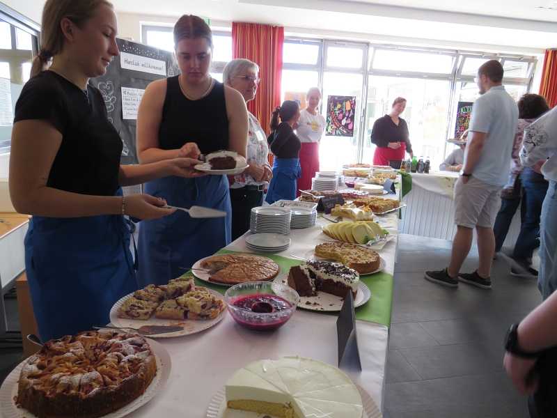 Drinnen im Schulcafé fühlten sich die erwachsenen Gäste besonders gut aufgehoben: Am riesigen Kuchenbuffet mit selbst gemachten Torten und Leckereien fiel die Auswahl schwer.