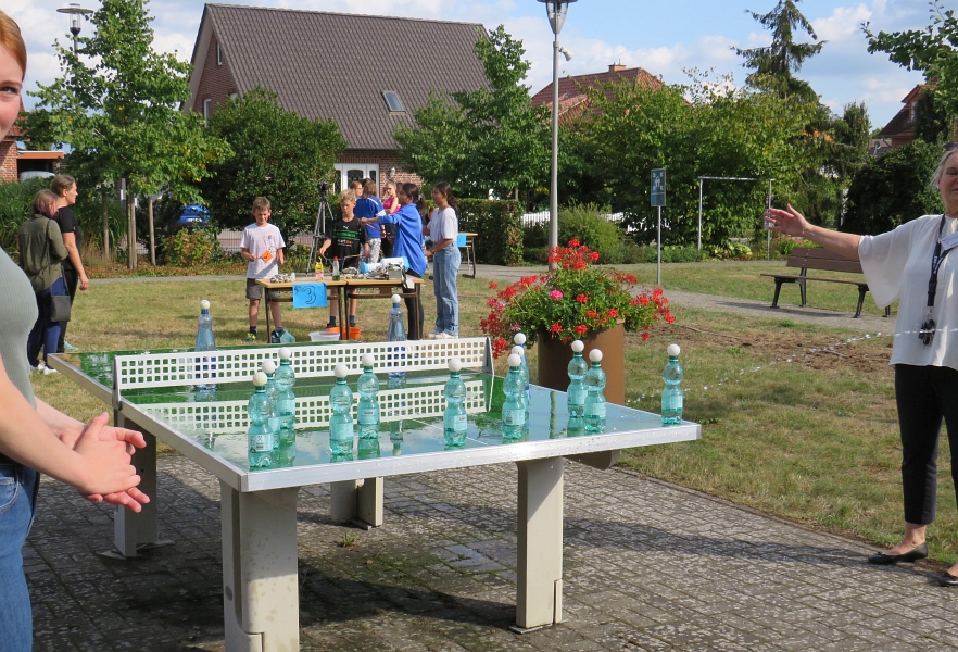 Zum 160-jährigen Schuljubiläum sollten nach einer viel zu langen Coronapause endlich wieder die Türen offen stehen für Gäste an der BBS Thuine und die folgten der Einladung und kamen in Scharen. Bei strahlendem Sonnenschein konnten Lehrer- und Schülerschaft gleich am Eingang des Schulgeländes zahlreiche kleine Gäste begrüßen, die begeistert einen Spieleparcours absolvierten: Bobbycarrennen, Sackhüpfen, Tauziehen, Wasserbomben fischen oder Riesenseifenblasen machen: Die insgesamt neun Stationen kamen so gut an bei den kleinen Gästen, dass viele gar nicht genug bekommen konnten und sich immer wieder bei den Spieleklassikern anstellten.