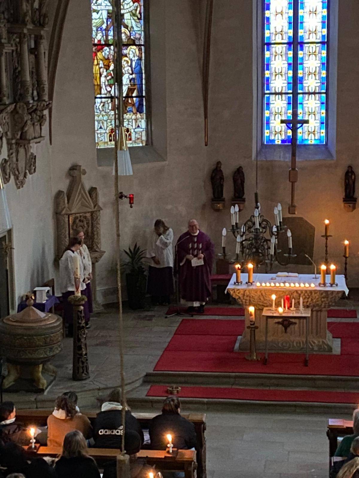 Kurz vor den Weihnachtsferien feierte die gesamte Schulgemeinschaft der BBS Thuine eine stimmungsvolle Roratemesse in der bis auf den letzten Platz gefüllten Dorfkirche St. Georg in Thuine. Unter dem Motto „Ihr seid das Licht der Welt!“ stimmten sich Schülerinnen und Schüler sowie Lehrkräfte mit vielen „lichtvollen Liedern, Gebeten und Texten“ auf das bevorstehende Weihnachtsfest ein.