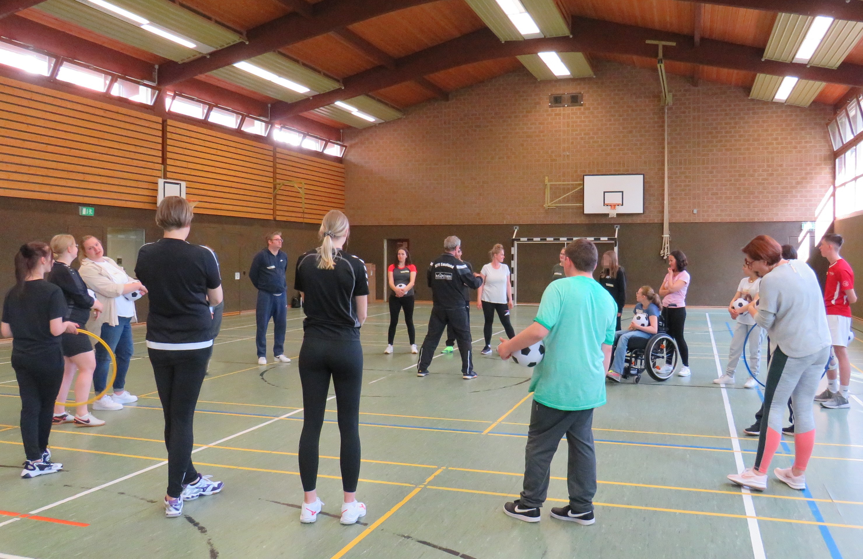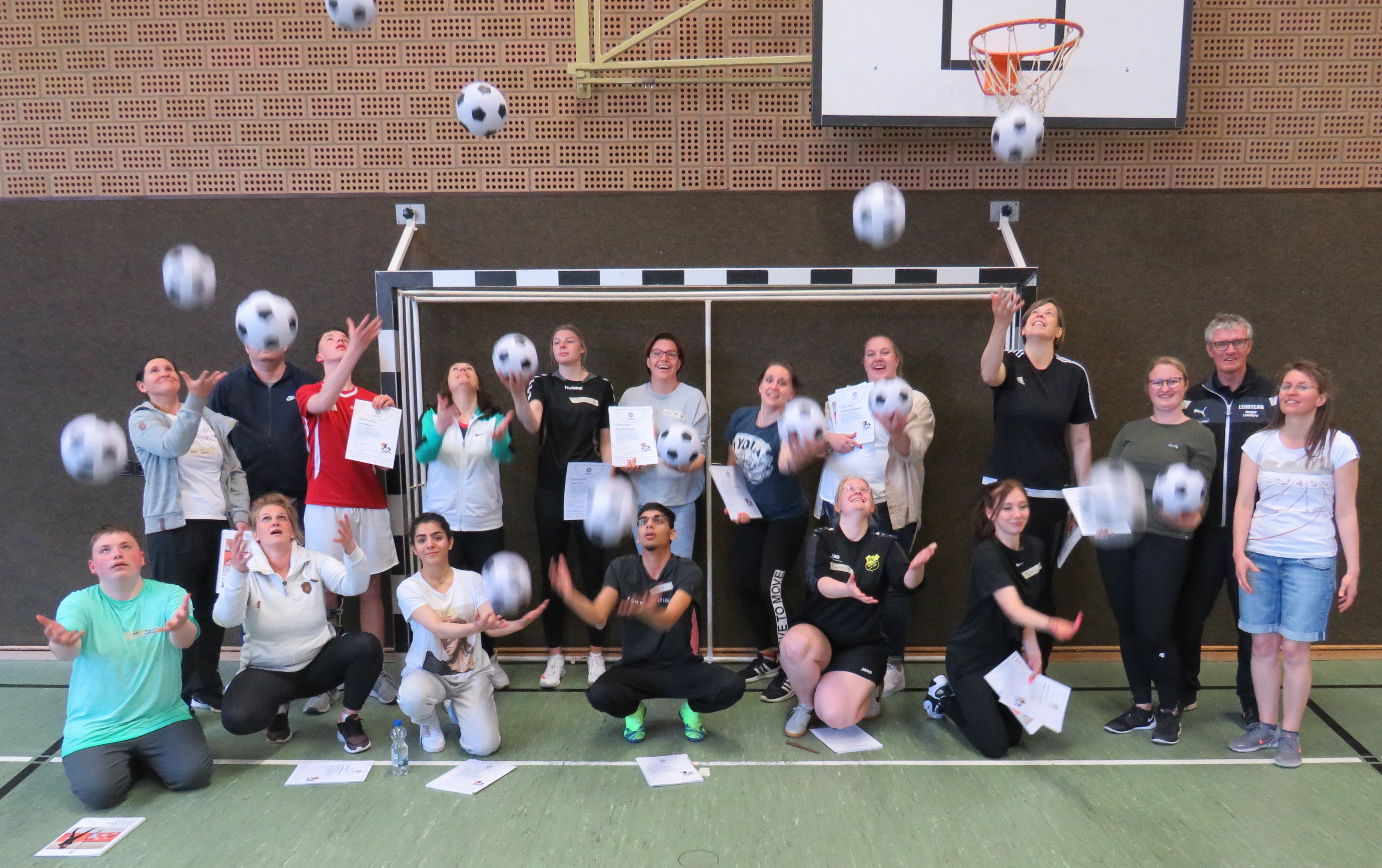 Mit großer Freude nahmen die Auszubildenden der Berufsfachschule Sozialpädagogische:r Assistent:in an der Fortbildung „Spielen – Erfahren – Erleben – Ballorientierte Bewegungsförderung im Vorschulalter“ teil. Aufgrund einer Kooperationsvereinbarung, die der Kreisfußballverband Emsland am 2. Februar 2022 mit den Berufsbildenden Schulen Thuine geschlossen hat, finden in Thuine regelmäßig Fortbildungen zur ballorientierten Bewegungsförderung im Vorschulalter in Thuine statt.