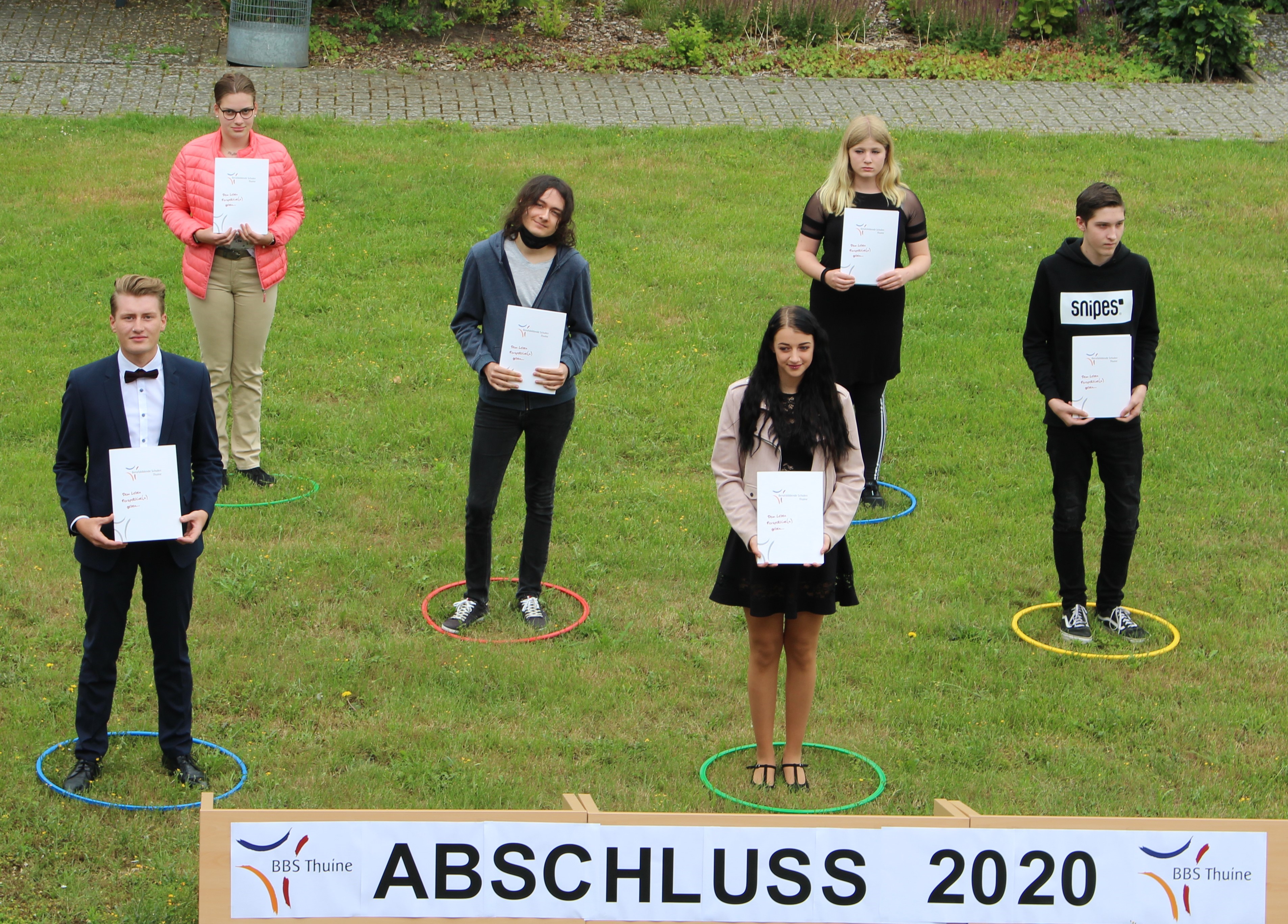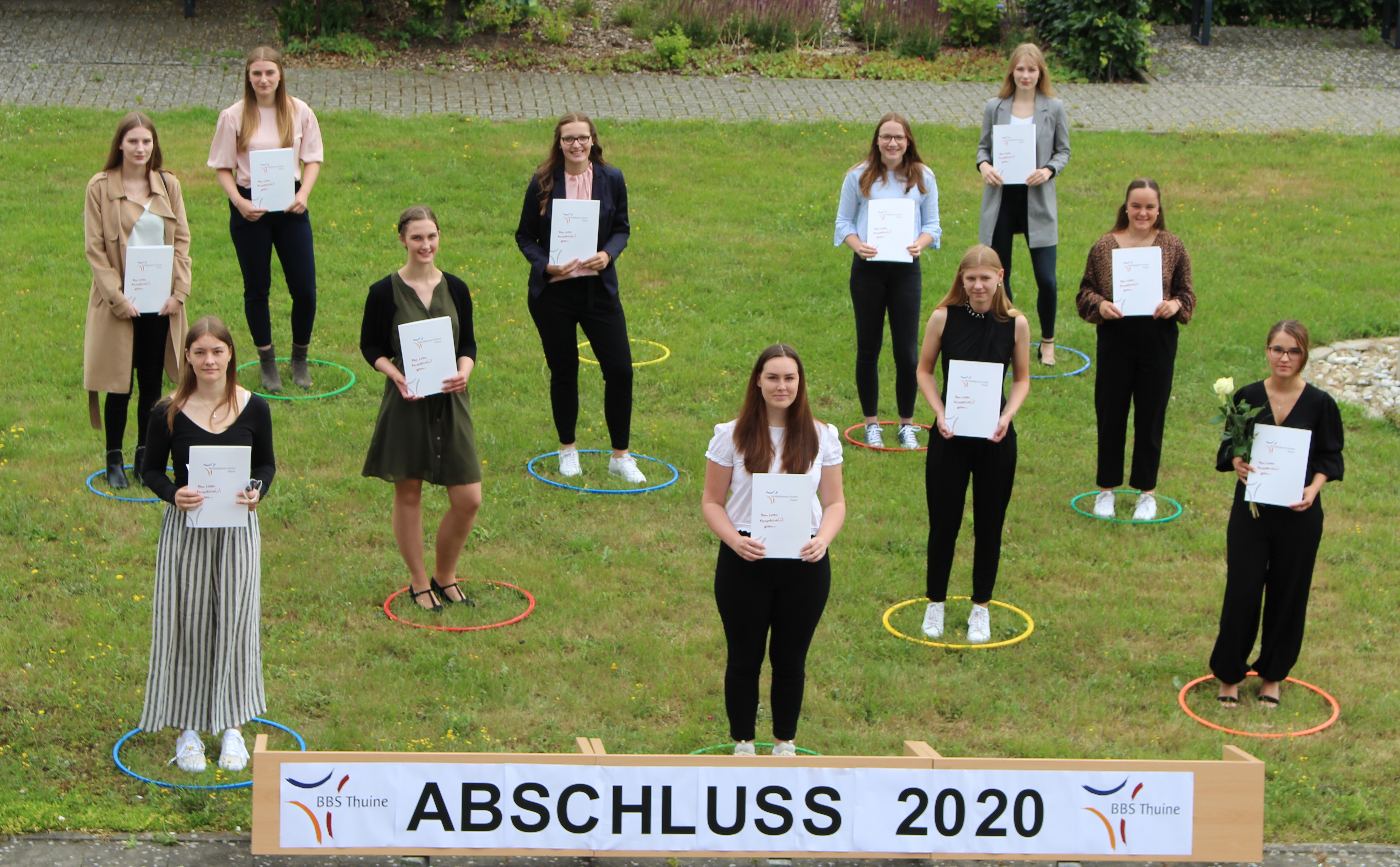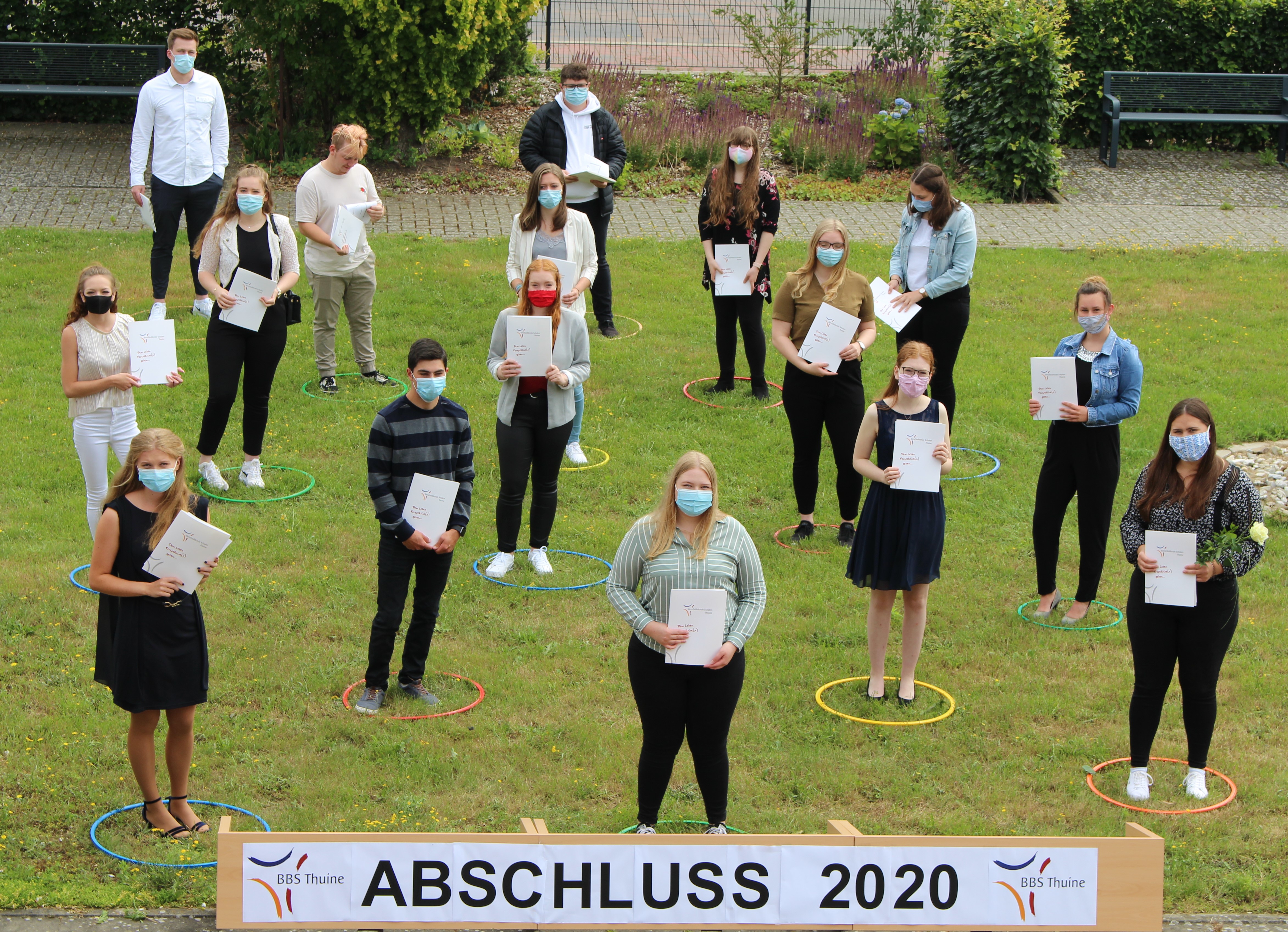 Thuine. 66 Schüler der BBS Thuine haben von ihren Klassenlehrerinnen zum Schulabschluss ihre Zeugnisse erhalten. Räumlicher und zeitlicher Abstand war auch hier das Gebot der Corona-Stunde. Der gemeinsame Gottesdienst und die Zeugnisübergabe im großen Stil entfielen. Doch auch die kleine, individuelle Feier werden die Absolventen sicher nicht vergessen.