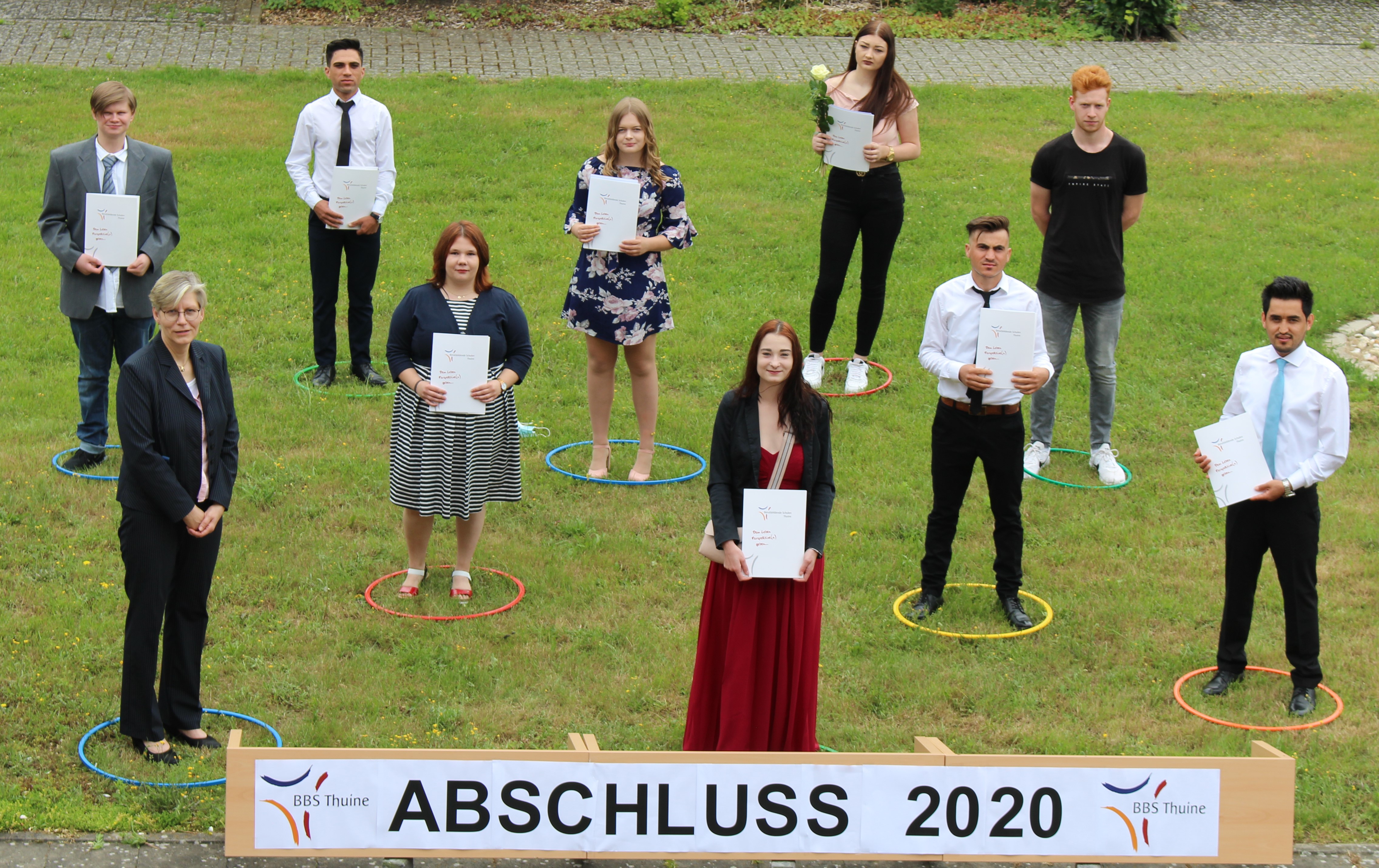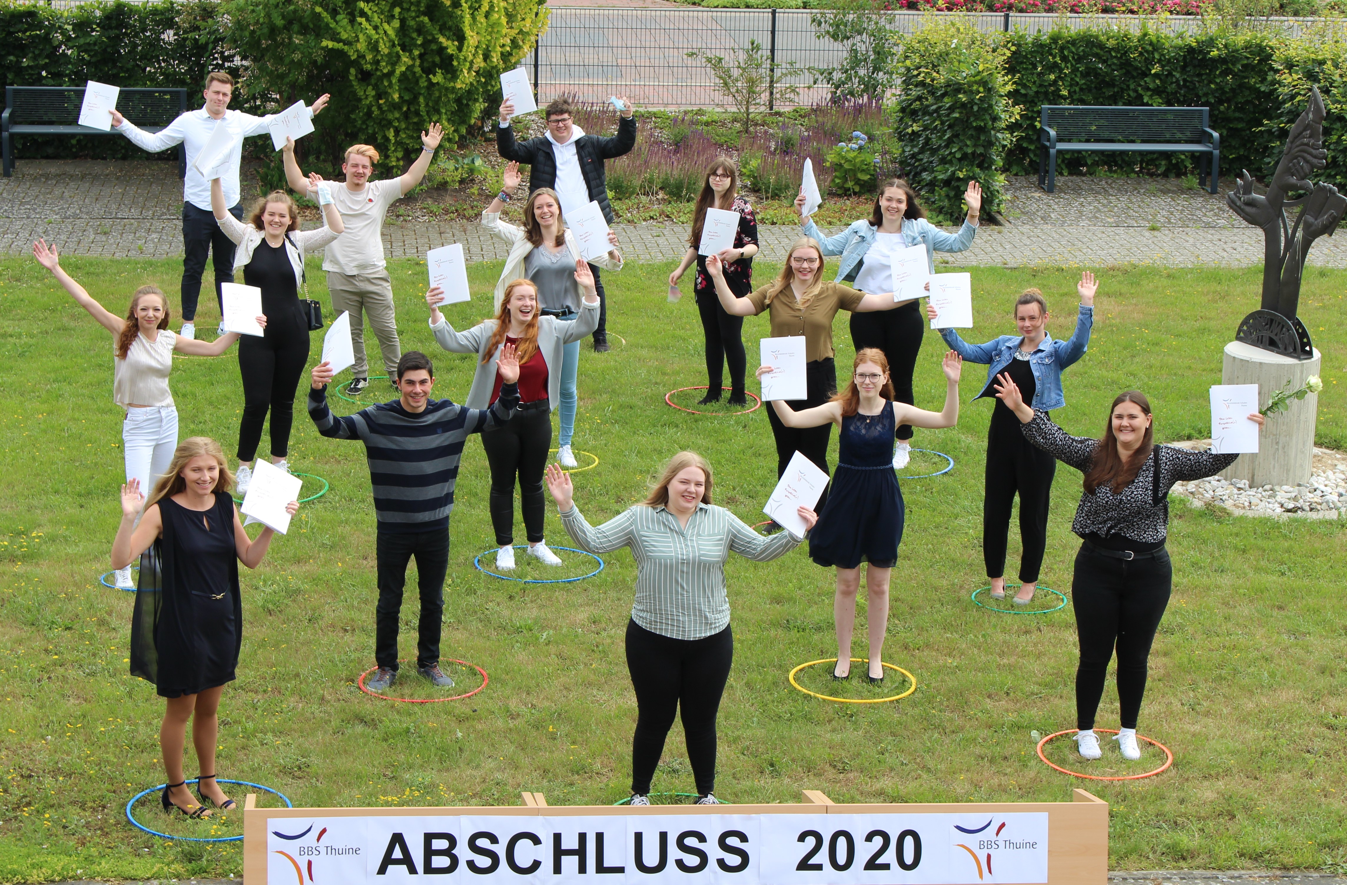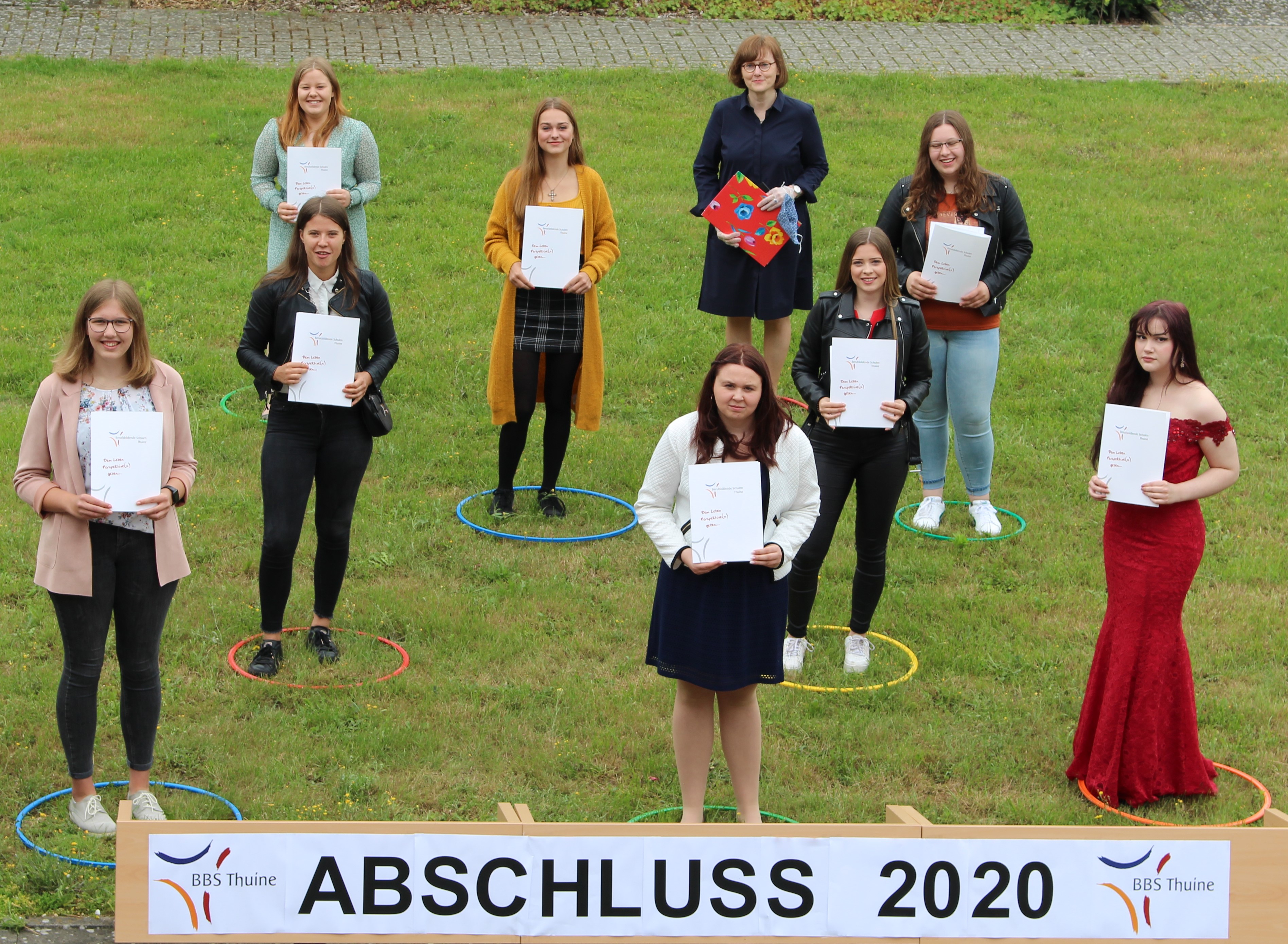 Thuine. 66 Schüler der BBS Thuine haben von ihren Klassenlehrerinnen zum Schulabschluss ihre Zeugnisse erhalten. Räumlicher und zeitlicher Abstand war auch hier das Gebot der Corona-Stunde. Der gemeinsame Gottesdienst und die Zeugnisübergabe im großen Stil entfielen. Doch auch die kleine, individuelle Feier werden die Absolventen sicher nicht vergessen.