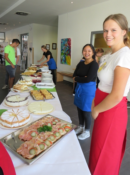 Drinnen im Schulcafé fühlten sich die erwachsenen Gäste besonders gut aufgehoben: Am riesigen Kuchenbuffet mit selbst gemachten Torten und Leckereien fiel die Auswahl schwer.