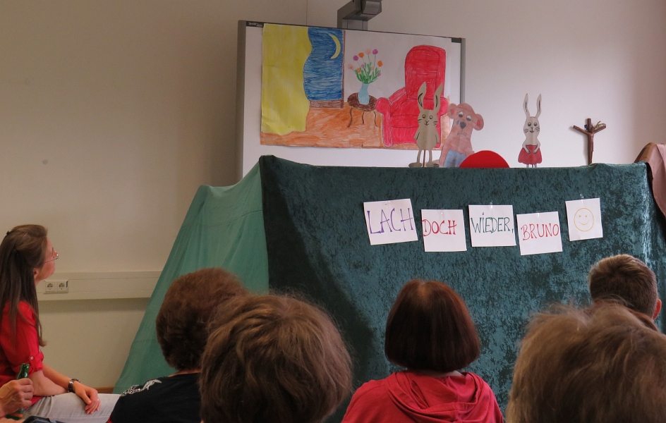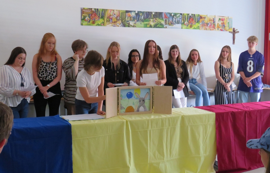 Highlight der Veranstaltung: Die Präsentationen der Schüler:innen. Stabpuppentheater, Erzähltheater und ein gespieltes Bilderbuch begeisterten die Besucher und die Schüler:innen freuten sich über viel Applaus und volle Zuschauerräume. Die „Gesundheitsklassen“ präsentierten Aktionen aus ihren Bildungsgängen und zeigten in Rollenspielen Pflegesituationen und im Bewegungsraum konnten sich Gäste z. B. Übungen bei Arthrose zeigen lassen oder einen Rollstuhl ausprobieren.