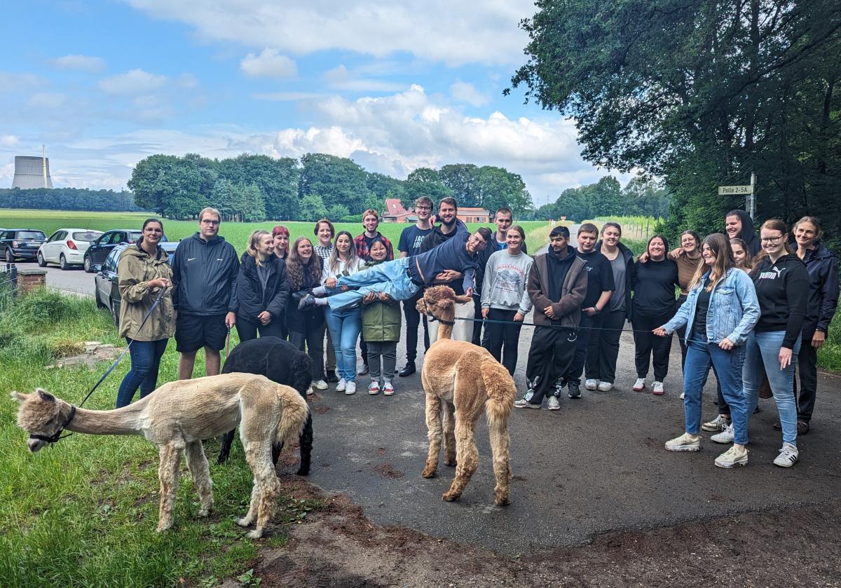 Die Klassen HEP1 und HEP2 (Fachschule Heilerziehungspflege) besuchten heute gemeinsam mit ihren Lehrerinnen Frau Seifert und Frau Waldschmidt die "Alpakas in Bramsche" und haben dort einiges über die tiergestützte Therapie mit Alpakas erfahren.