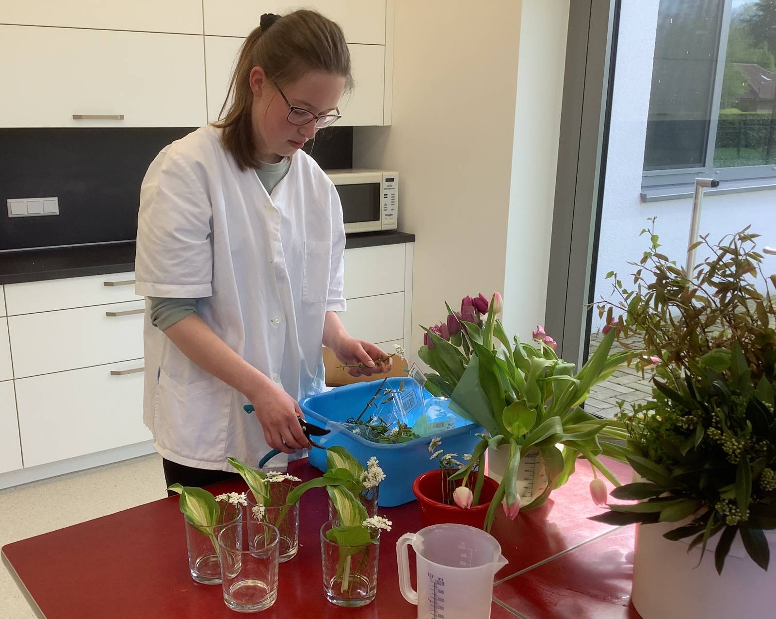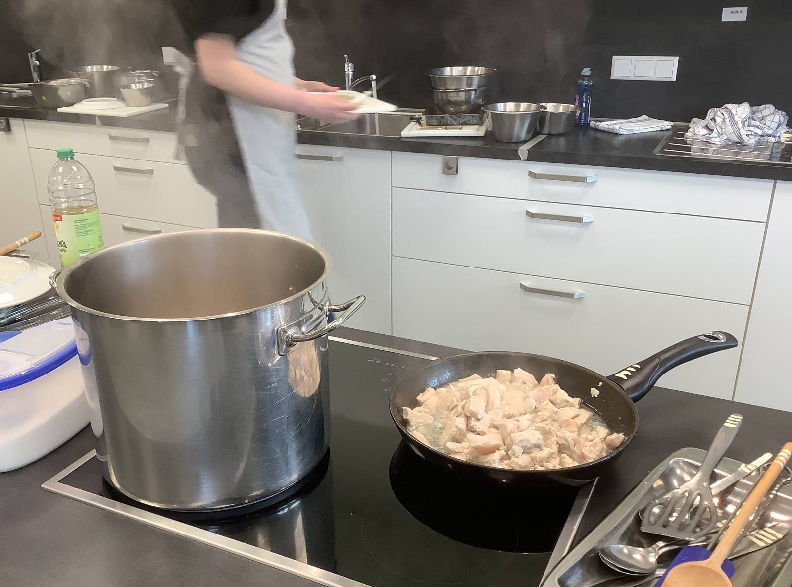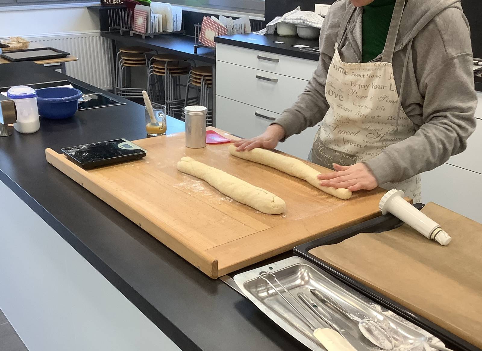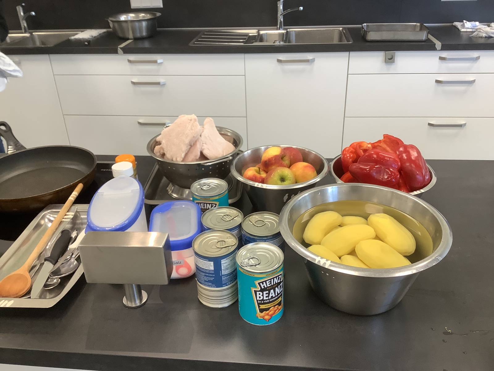 Die Auszubildenden im Bildungsgang Ernährung und Hauswirtschaft können ihre erworbenen Fähigkeiten heute praktisch anwenden. Natürlich wird auch im Schulalltag der Klasse sehr viel selber gekocht, aber viele wissen vielleicht aus ihrer heimischen Küche, dass Kochen für Besuch meistens deutlich herausfordernder ist.
