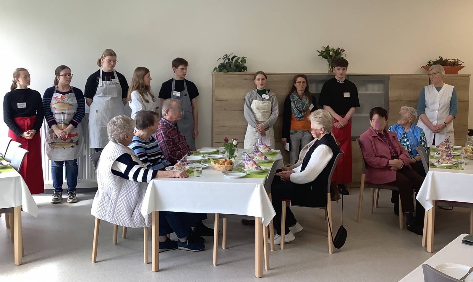 Jung und Alt auf diese Weise zusammenzuführen, ist ein wunderschöner Weg für generationenübergreifende Projekte: Die Freude, zu zeigen, was man gelernt hat, und die Freude, in geselliger Runde an einem schön gedeckten Tisch speisen und plaudern zu können, zeigt den Mehrgewinn.