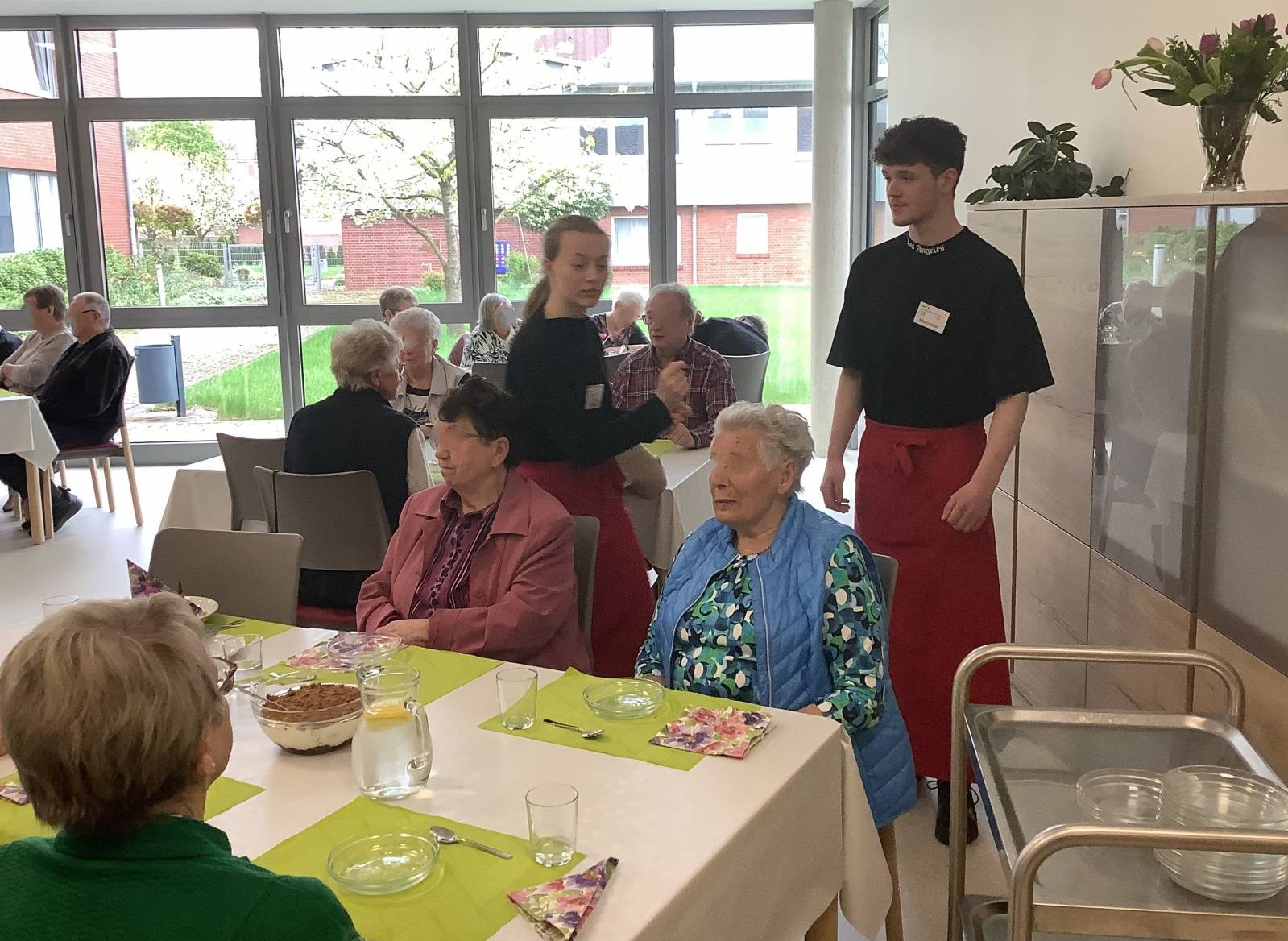 Über 30 Gäste bekochen unsere Schüler:innen im Rahmen der Initiative Mittagstisch für Alle, eine Aktion der Samtgemeinde Freren, die bereits seit einigen Jahren erfolgreich besteht. Diese Aktion richtet sich an ältere Menschen Ü60, sie werden in regelmäßigen Abständen in verschiedenen Einrichtungen der Samtgemeinde bekocht.