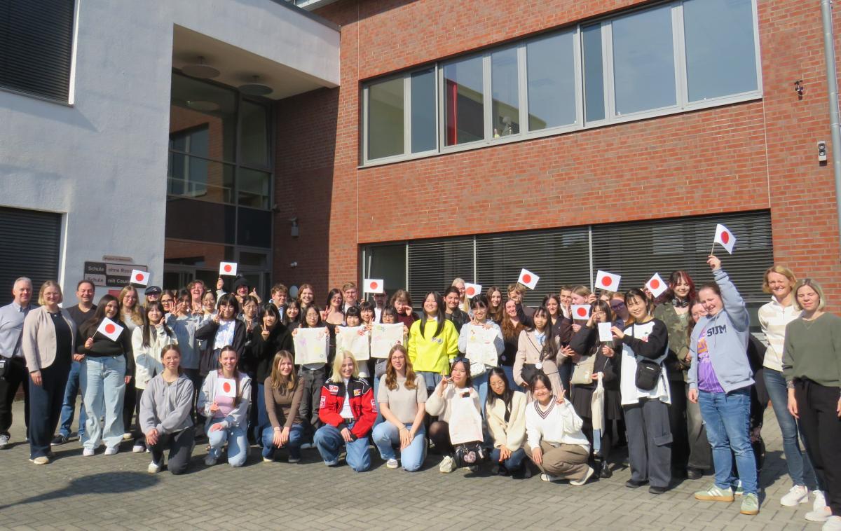 Kurz vor den Osterferien durften wir besonderen Besuch an unserer Schule begrüßen: 19 Schülerinnen der Fujischule aus Japan, begleitet von zwei Lehrkräften ihrer Schule und Schw. M. Maximilia Um, Generalvikarin, waren anlässlich des 100jährigen Jubiläums ihrer Schule, bei uns zu Gast.