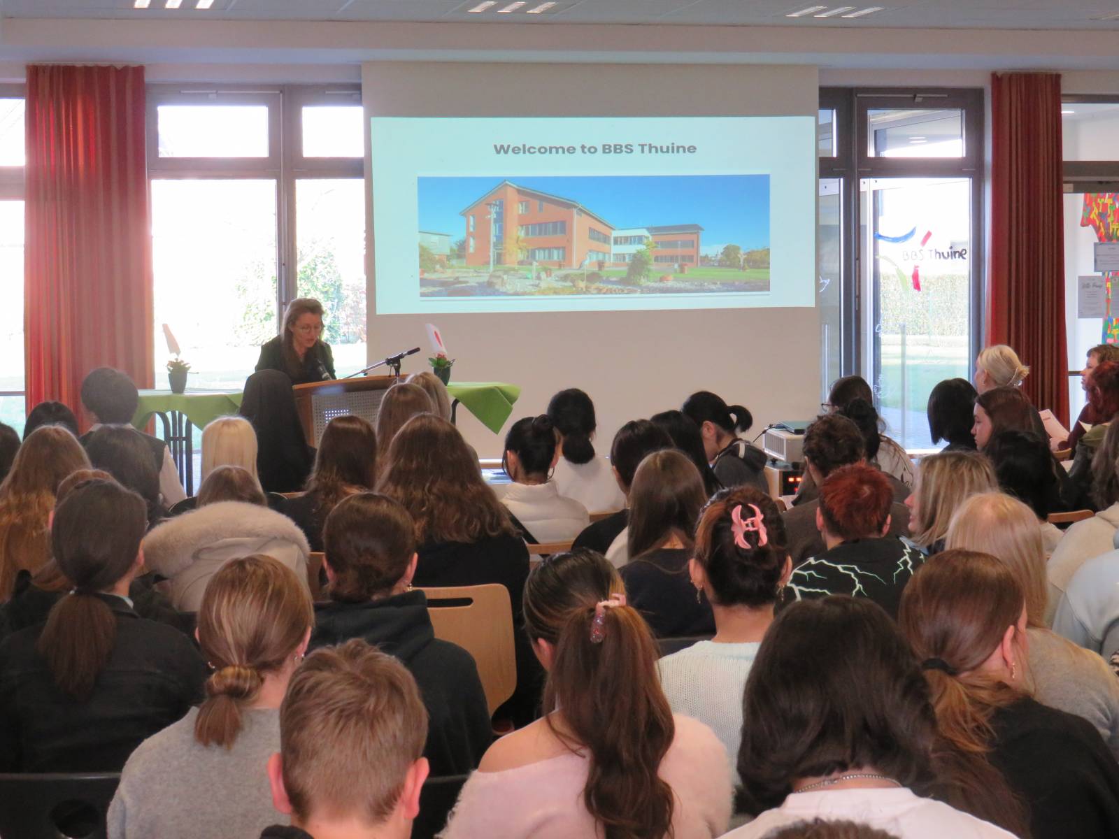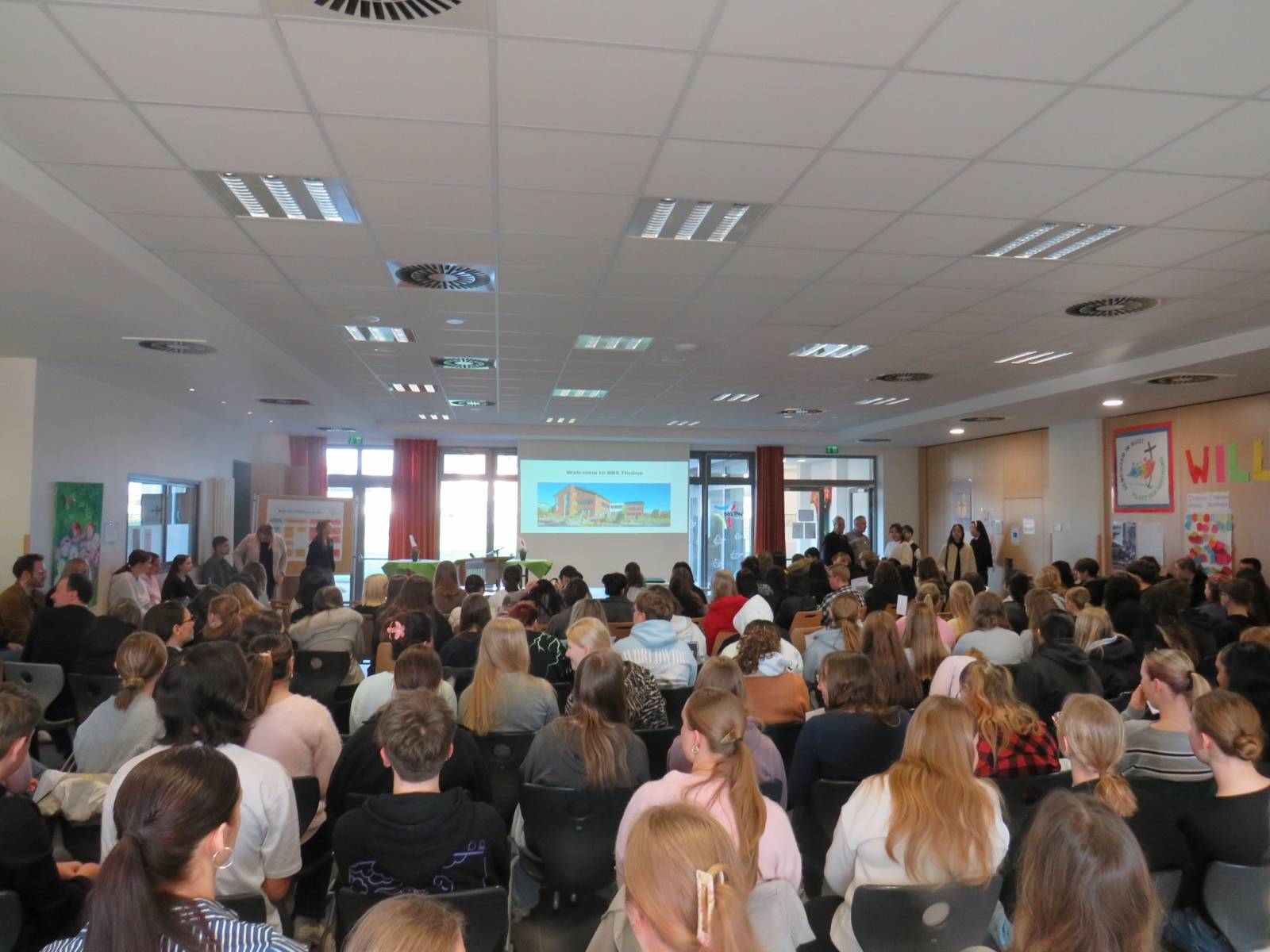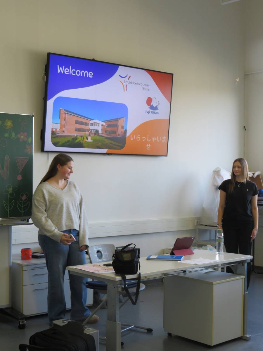 Verbunden sind wir durch unseren gemeinsamen Schulträger, den Thuiner Franziskanerinnen, die auch in Japan wirksam sind. Um den Austausch besonders persönlich zu gestalten, wurde jeder japanischen Schülerin ein/e deutsche/r Pate/Patin, ein „student partner“ zur Seite gestellt. So entstand eine direkte 1:1-Begegnung, die es ermöglichte, sich kennenzulernen, voneinander zu lernen und sprachliche wie kulturelle Brücken zu bauen. Ein weiterer Teil des Austauschs waren die gegenseitigen Präsentationen: Unsere Schüler:innen stellten die BBS Thuine auf Englisch vor, während wir von unseren Gästen spannende Einblicke in ihr Schulleben erhielten – aber auch in japanische Traditionen wie Kimonos, die Teezeremonie und japanisches Essen.