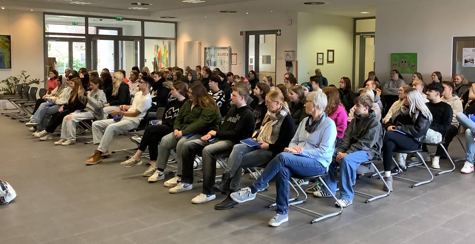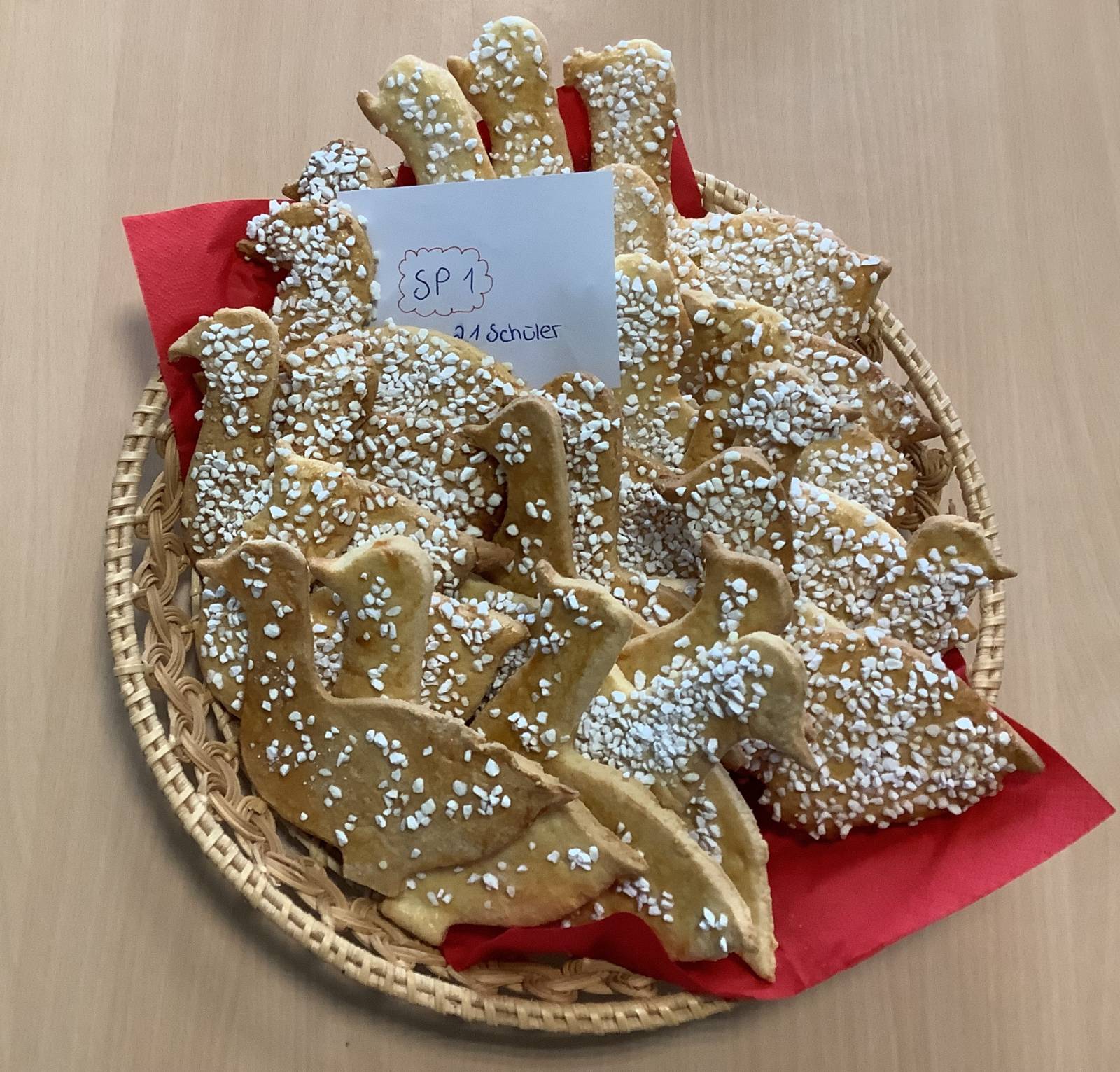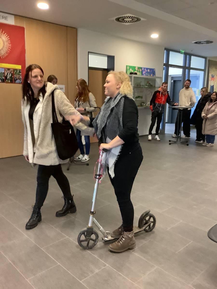 Zum Abschluss überreichten die Schülerinnen und Schüler der HW (Berufsfachschule Hauswirtschaft und Pflege) mit Unterstützung der BES selbst hergestelltes Gebäck in Form der Martinsgans an die Teilnehmer der Feierstunde.