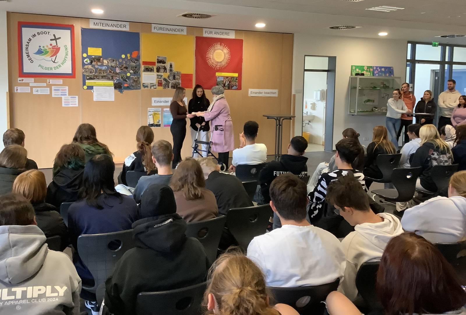 Die üblichen Theaterspiele zum Leben des Heiligen Martins werden häufig sehr altertümlich gestaltet. Die FSP I und die HEP 3 inszenierten die zentralen Werte des Heiligen Martins jedoch in einer modernen Weise mit kreativen Szenen aus der heutigen Lebenswelt. Die zeitlosen Werte der Hilfsbereitschaft, Nächstenliebe und großen Achtsamkeit gegenüber Menschen in Not zeichnen diesen Heiligen auch in der heutigen Zeit aus. In der Aufführung verdeutlichten die Schüler und Schülerinnen, dass Einsatz für Schutzbedürftigen immer noch aktuell und zeitgemäß ist.